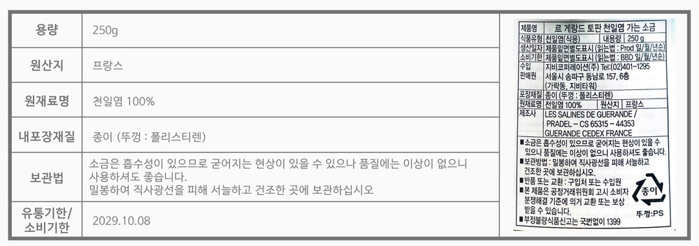 르 게랑드 토판 천일염 가는 소금