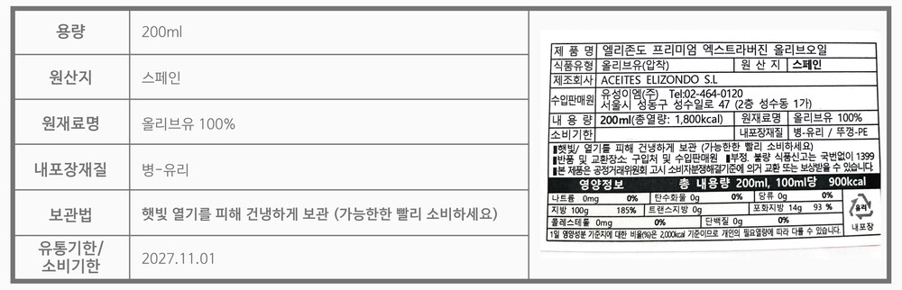 엘리존도 No.3 25-26 엑스트라버진 올리브오일 200ml