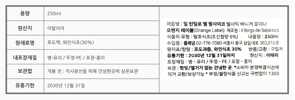 이탈리아 일 티넬로 델 발사미코 5년 숙성 오렌지 발사믹 식초 250ml