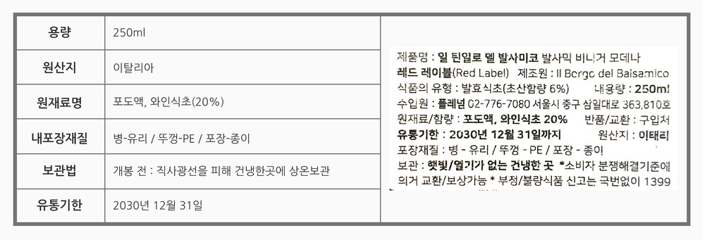 이탈리아 일 티넬로 델 발사미코 8년 숙성 레드 발사믹 식초 250ml