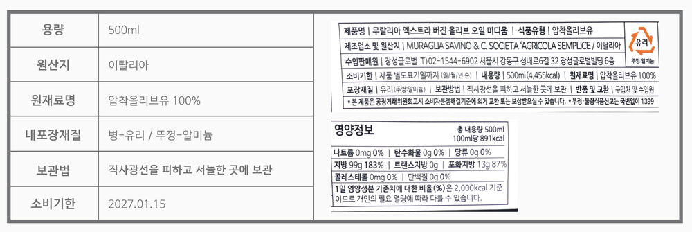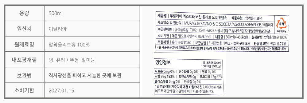 프란토이오 무랄리아 엑스트라버진 올리브오일 2종 500ml